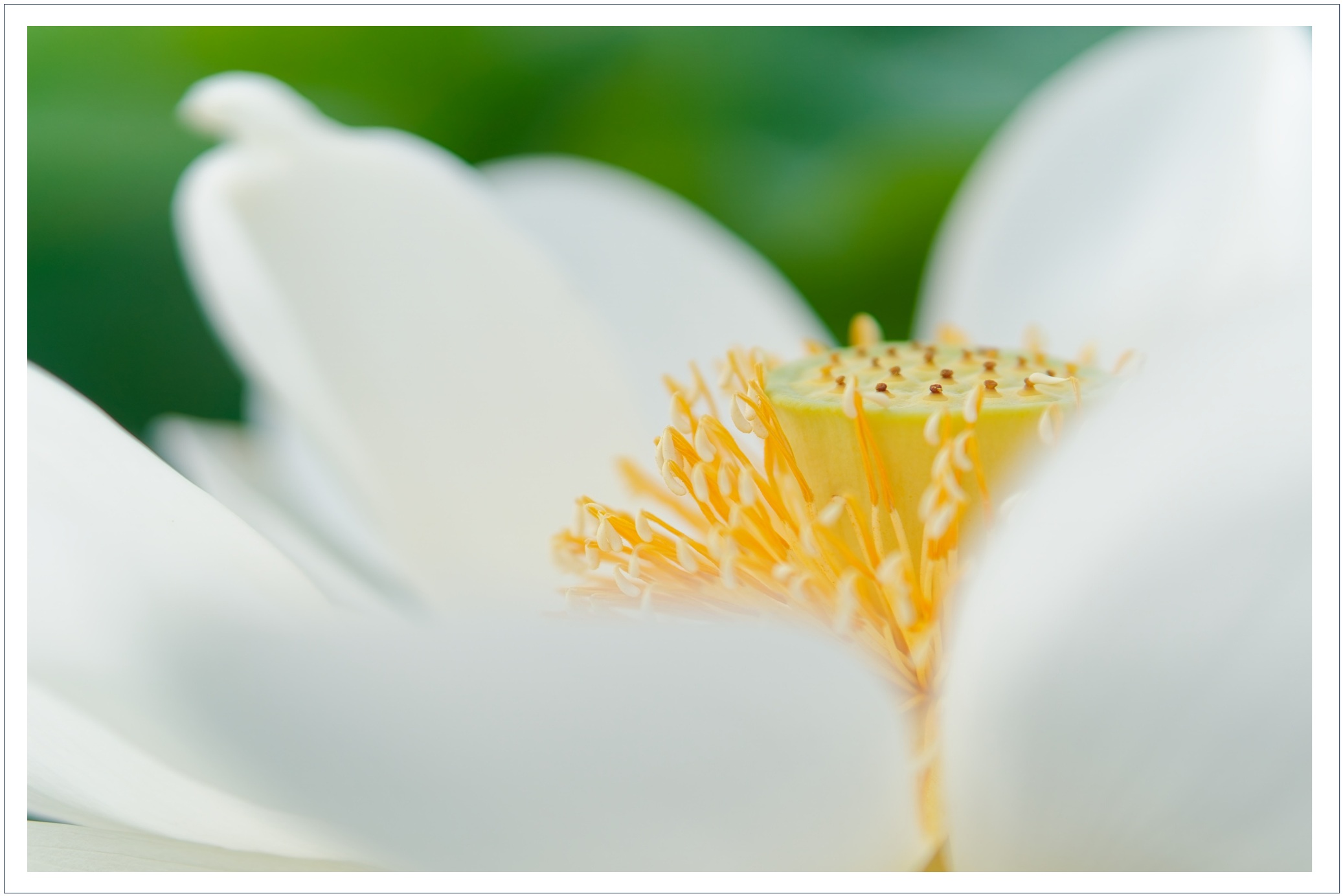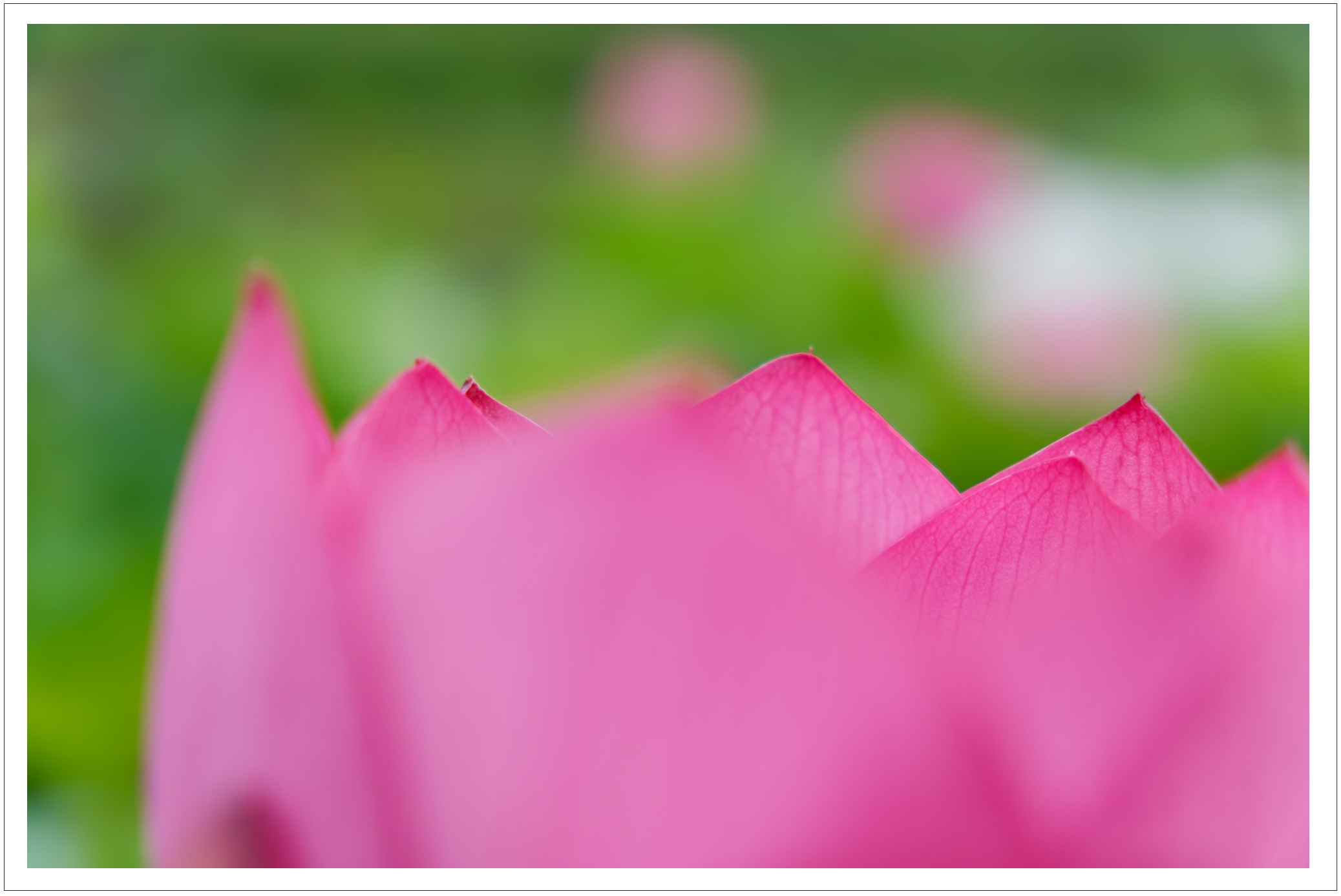 また、この圧縮効果をかけることで、画角が狭くなる事で背景に余計な情報が入りません。広角レンズとは違ってパースや歪みがないので蓮の花の形が綺麗に撮れています。