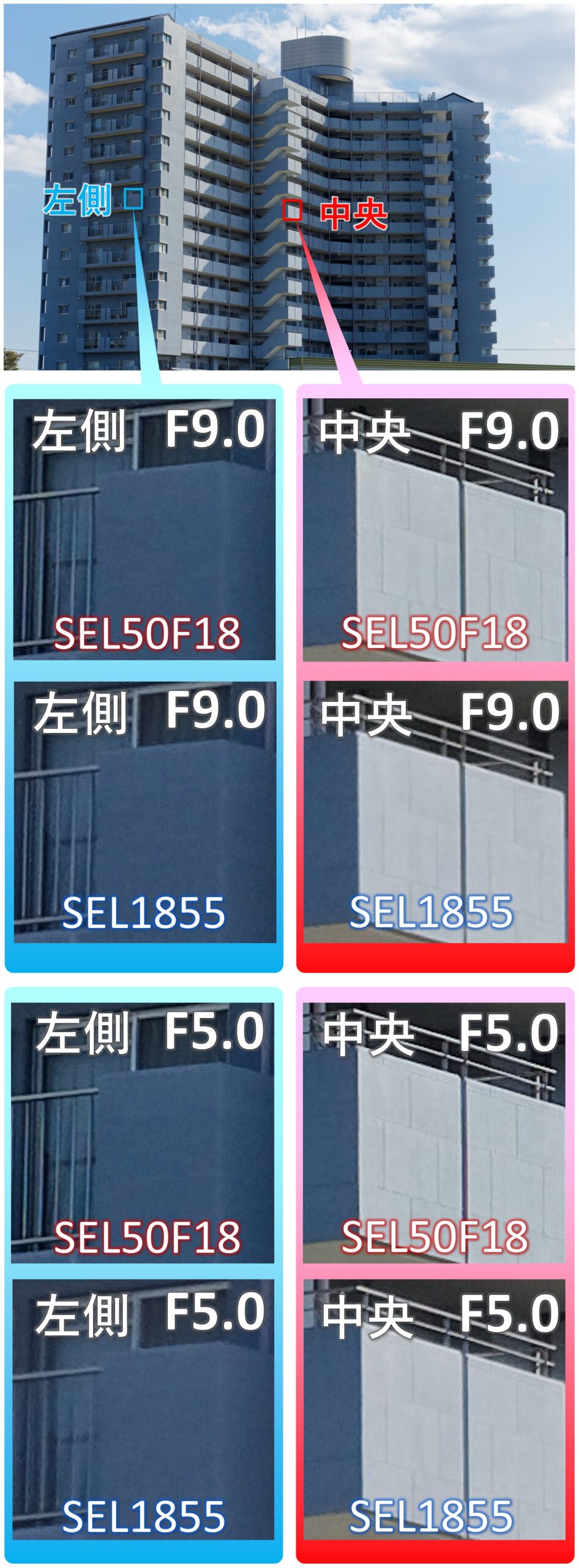 SEL50F18とSEL1855による解像感の比較(遠景写真)